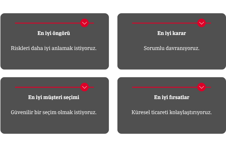 Yerel risk yönetimi ve müşteri hizmetleri ekibimiz, ticari faaliyetlerinize uzmanlık ve içgörüleriyle eşlik ediyor. Bu sayede, hem siz hem de biz, ülkemizin ekonomisinin büyümesine ve Türkiye'deki istihdama katkıda bulunabiliyoruz.